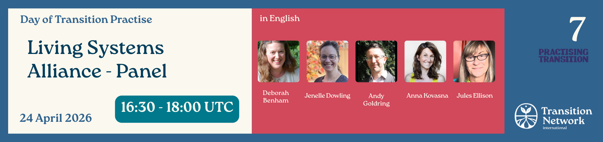 This session is a unique opportunity for Transition groups and friends to explore why reconnecting and acting with our ecosystems is essential at this moment, and what can happen when we learn from, design with, and decide alongside all of life—not just as individuals, but as part of a greater living web. You’ll hear inspiring stories, find out about new tools being co-created to support your efforts, and learn how the five partners will help communities like yours unlock deeper resilience, creativity, and hope.